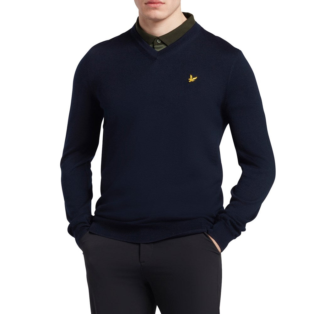 Lyle & Scott Golf Merino Blend V Neck Pullover - Navy