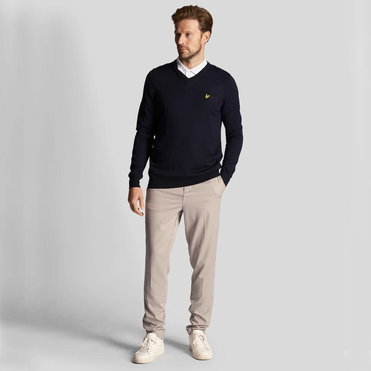Perfect for cooler days on the course, the Lyle & Scott V Neck Pullover is a timeless, versatile piece that will become a staple of your performance collection. Made from a soft but durable Merino-Acrylic blend that keeps you warm whilst enhancing mobility, you can look good and never sacrifice your swing. Finished with ribbed cuffs, collar, and hem for the perfect fit, as well as the signature Golden Eagle.