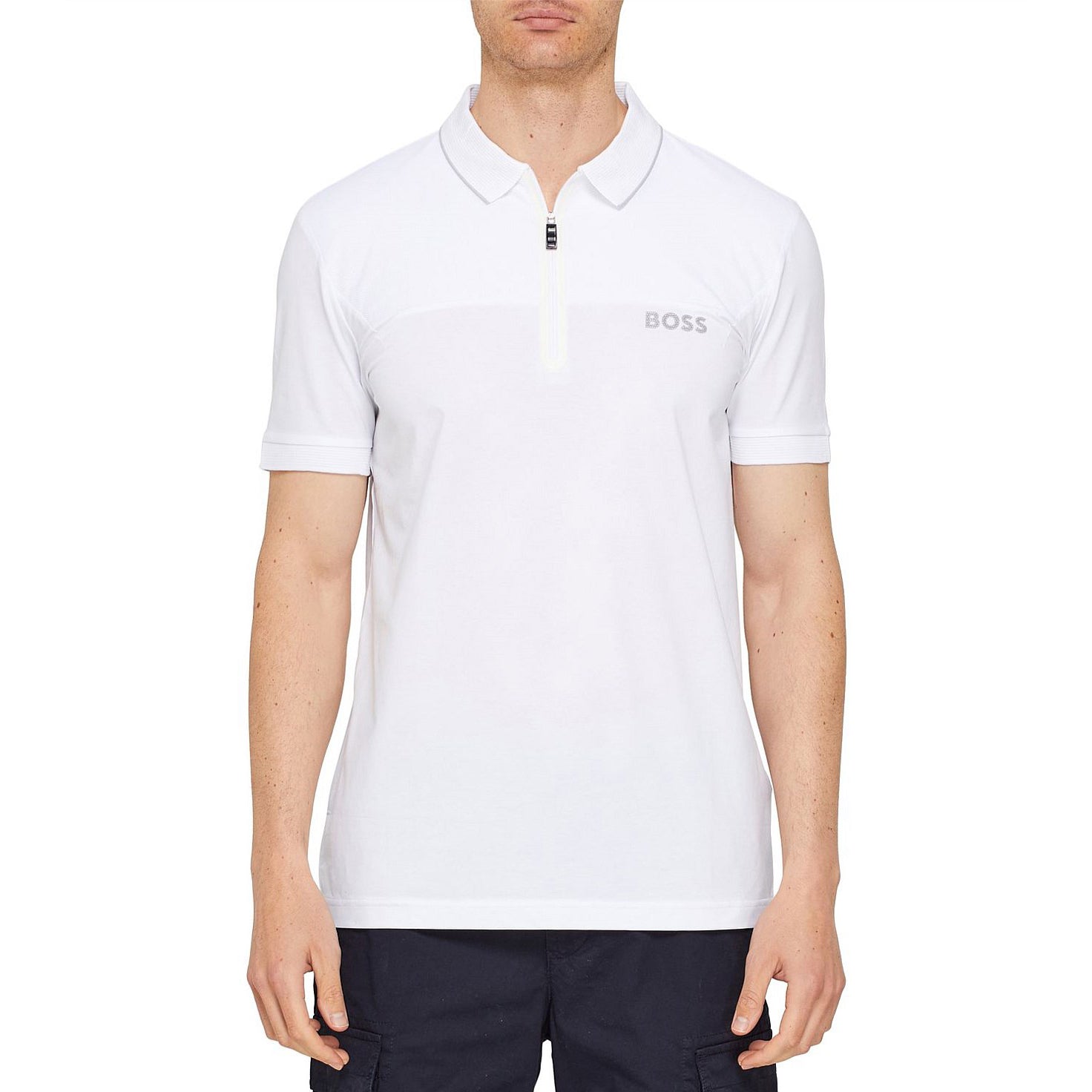 A slim-fitting zip-neck polo shirt engineered in stretch-cotton jersey with a mesh insert and matching branding at the chest by BOSS Menswear.