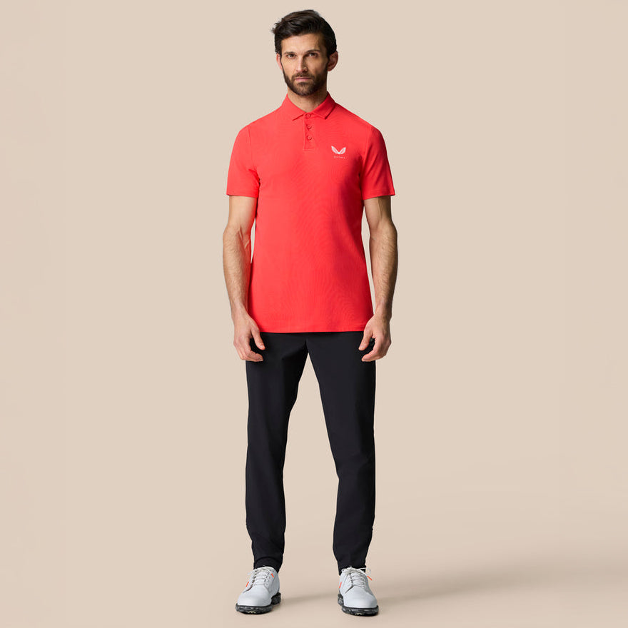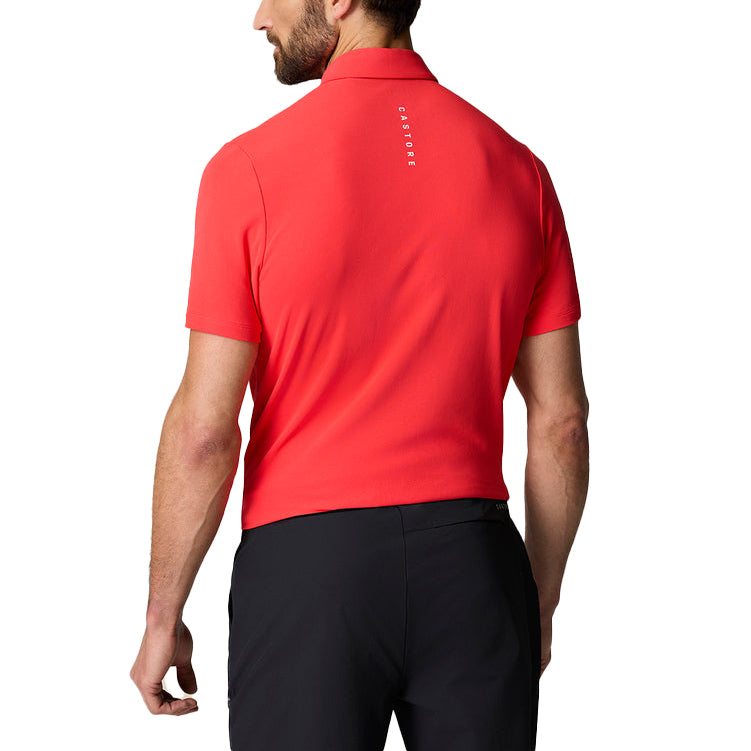 -High-Stretch, Lightweight Fabric: Offers maximum flexibility and breathability, allowing for unrestricted movement during every swing. -Aertek Technology: Enhances sweat-wicking to keep you dry and comfortable, even on the hottest days. -Drop-Back Hem with Hem Seam Opening: Provides additional coverage and ensures you stay comfortable during dynamic movements. -Self-Fabric Pointed Collar with Stand: A modern and stylish design that adds a clean, sharp look to your golf outfit. -Set-In Short Sleeves: Offers a comfortable fit and a stylish finish, perfect for warmer weather. -Side Splits: Enhance range of motion, allowing for full flexibility during your swing. -Aertek Tertiary Branding at Lower Left Back: Subtle branding that highlights the quality and performance of the top. -Castore Branding at Left Chest and Upper Back: Premium branding that reflects the top’s high-performance and stylish design.