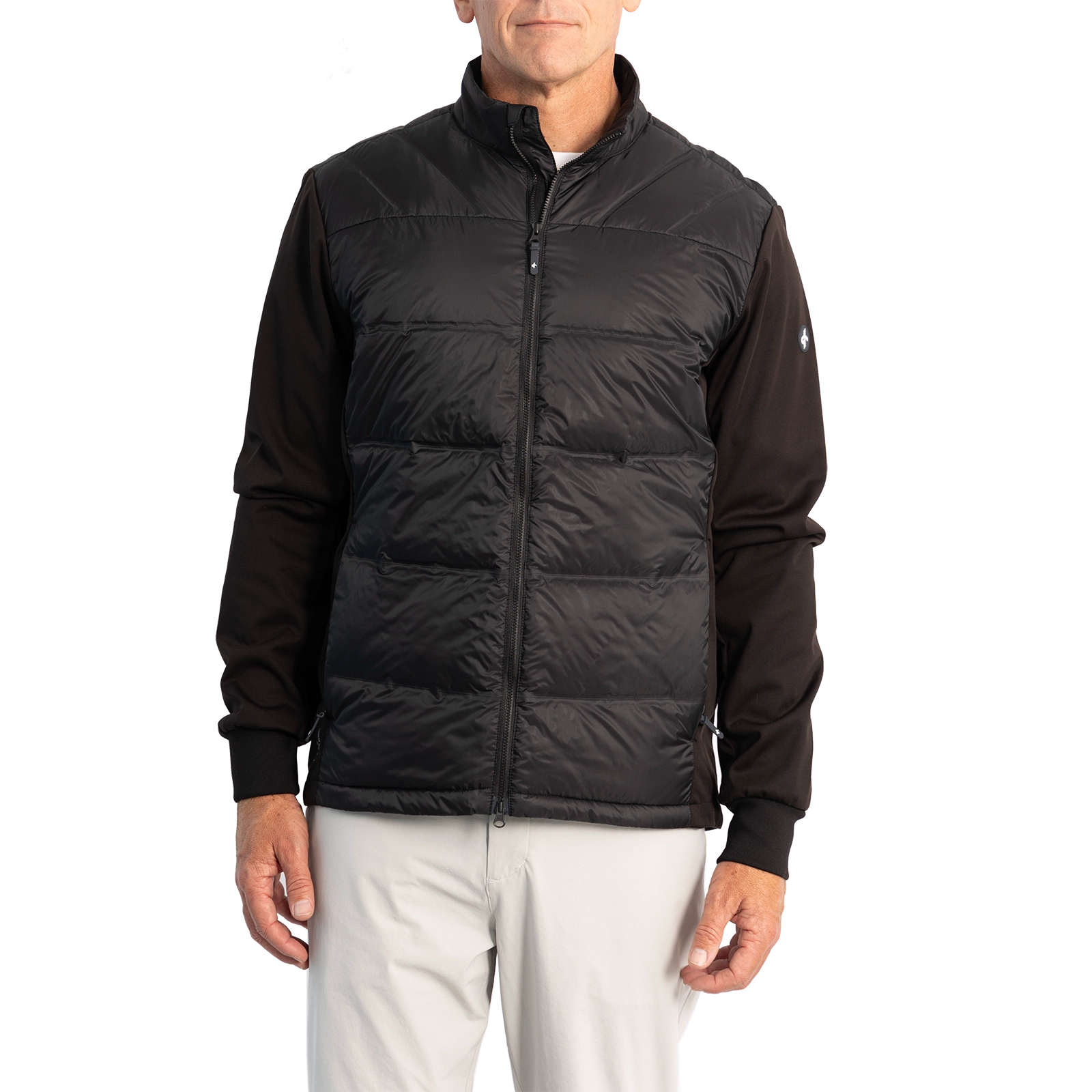 The Pro Hybrid Jacket provides a perfect combination of core warmth and movement on and off the course. A great jacket to add to your wardrobe, perfect for in between seasons. Being a level warmer and more padded than our best-selling classic Hybrid Jacket, the pro hybrid jacket is also a lightweight and packable jacket with down padding in front and back. The jacket has a regular fit. A classic cut with a timeless look.