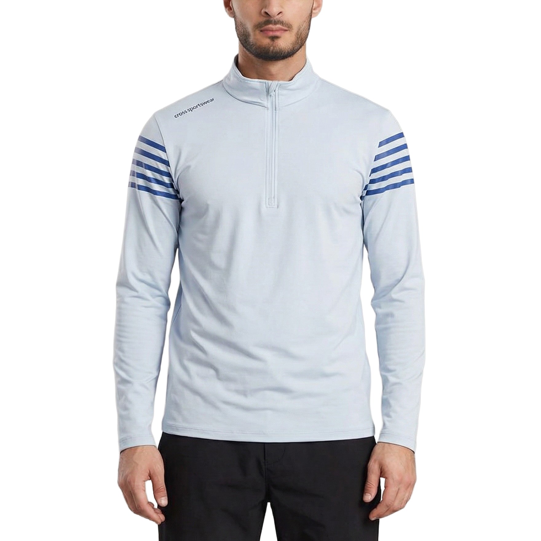 Sporty half zip is a classic high tube collar sweater that goes with almost anything. It is sporty and fashionable. The sweater has a zip opening at the front and is made in a technical fabric with a 4-way stretch, for perfect fit and comfort.