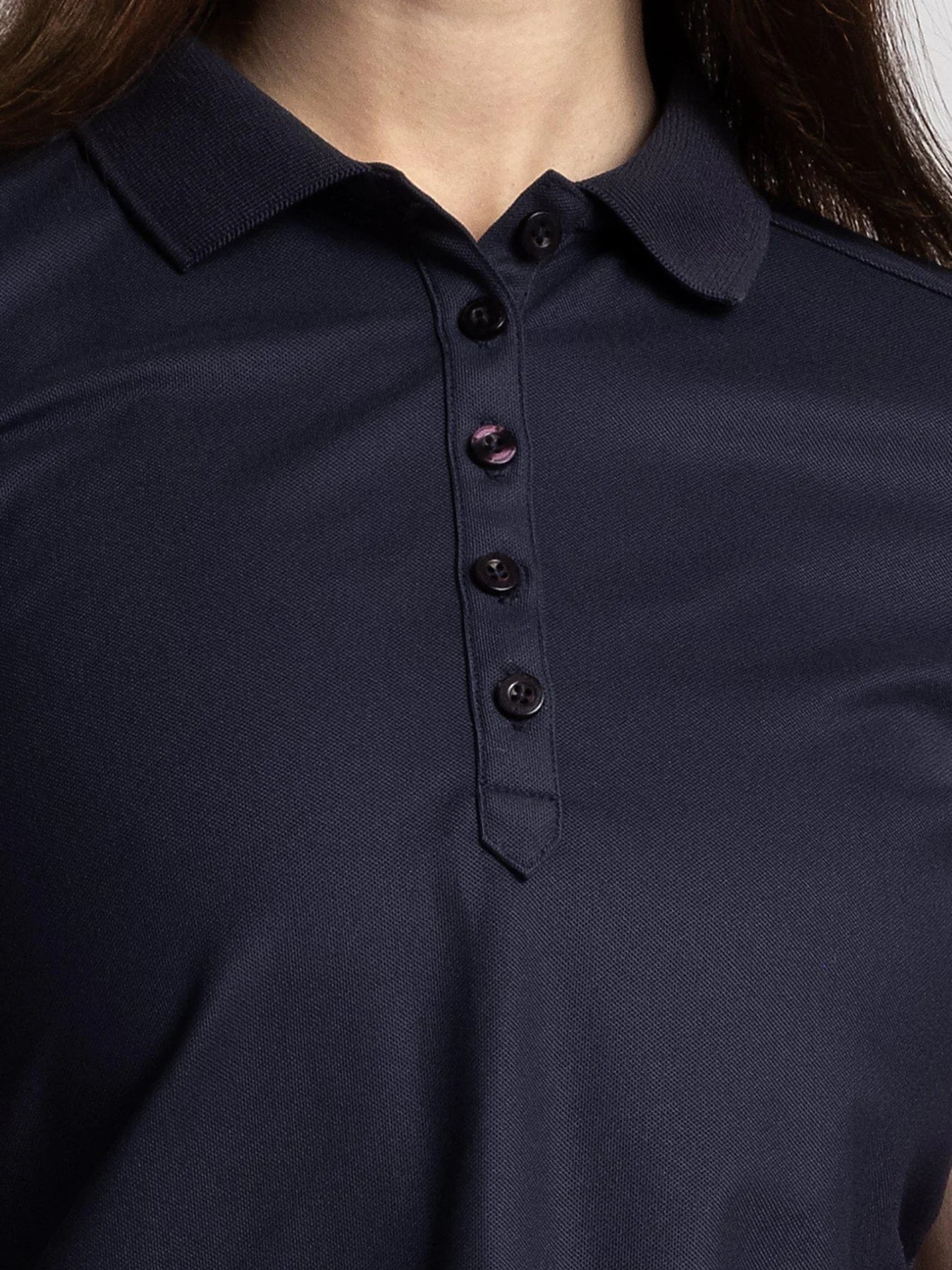Timeless and essential, the Cross Women's Amy Polo Golf Shirt is a wardrobe staple every golfer should own. With its classic fit and clean silhouette, this polo delivers effortless style both on and off the course. Designed in solid colors with a ribbed collar and sleeve cuffs, the Amy Polo blends traditional golf aesthetics with modern, sustainable fabric technology.