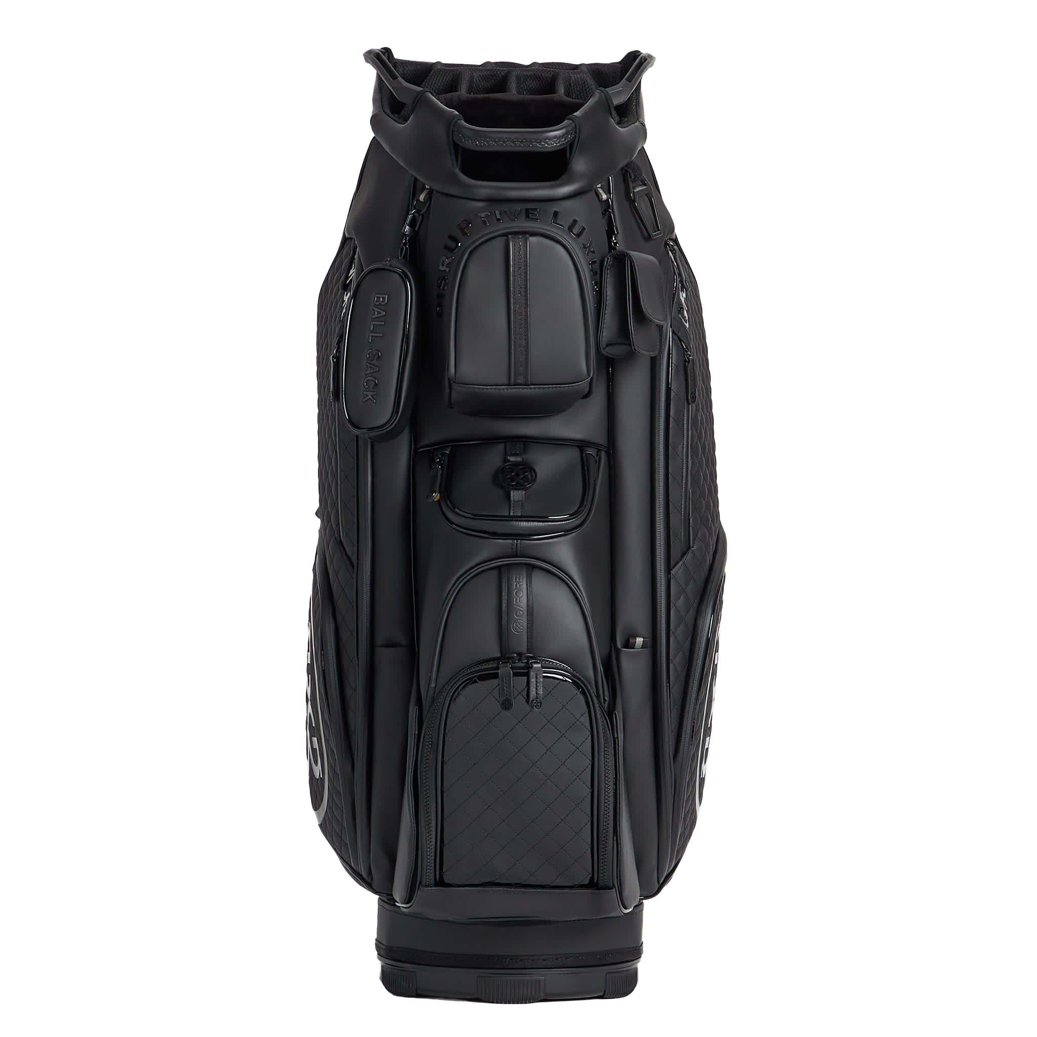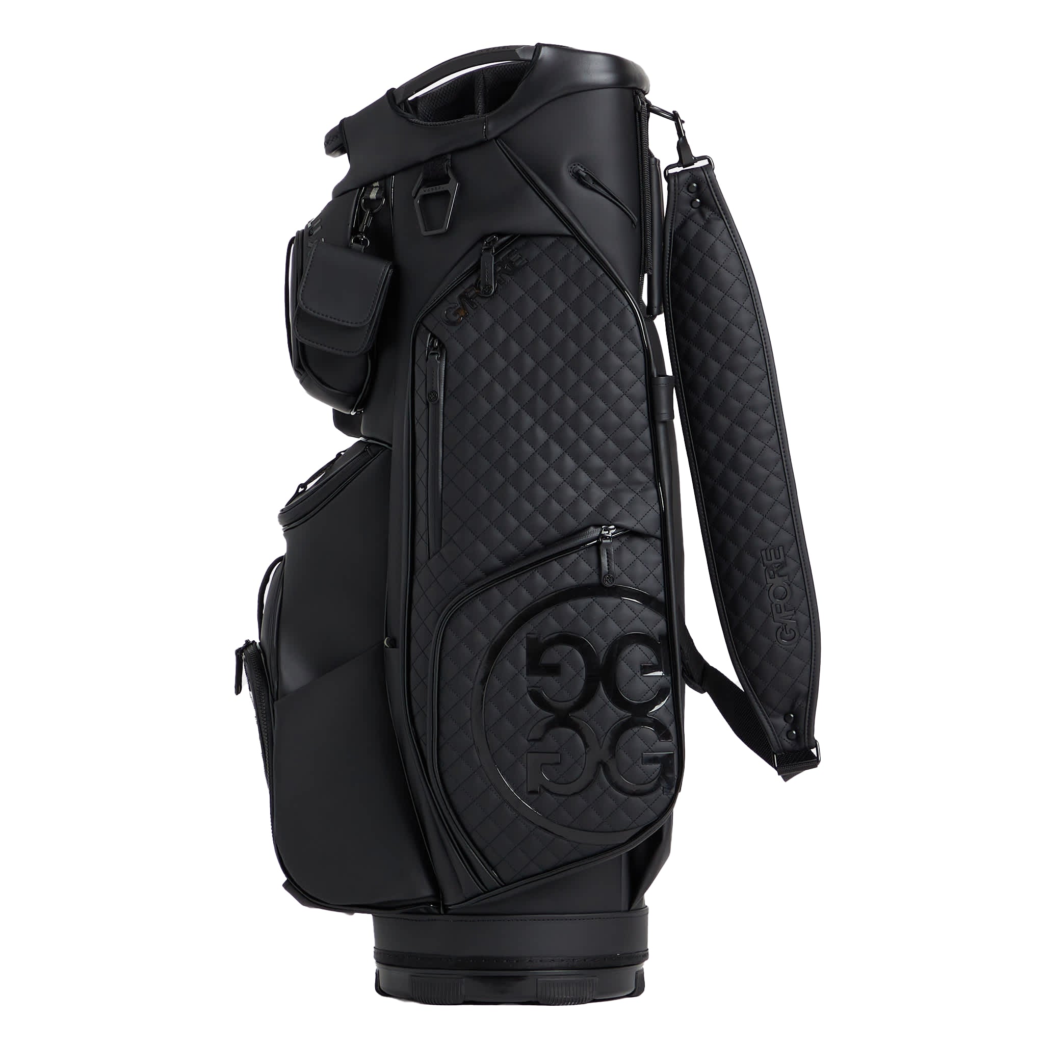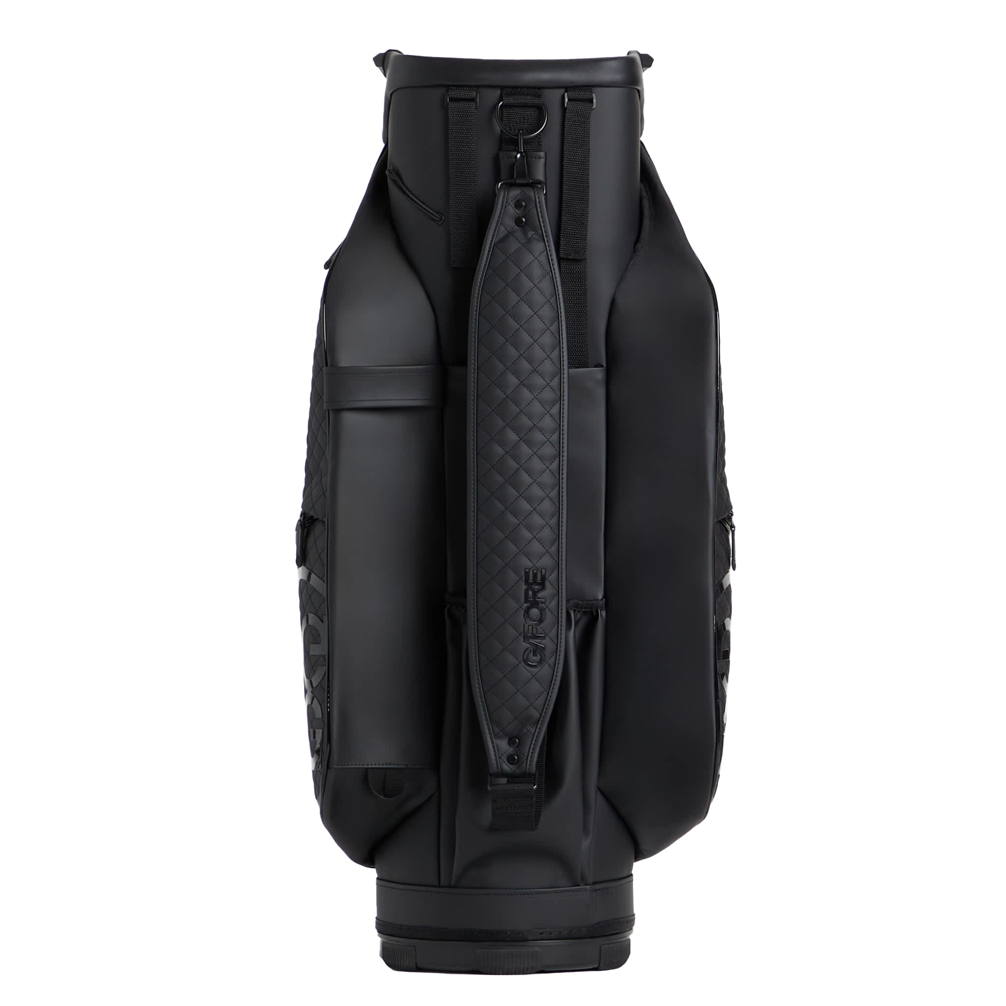 MADE WITH HIGH ABRASION RESISTANT LIGHTWEIGHT TOUR GRADE PU FOR LONGEVITY 17 POCKETS INCLUDING A FULL LENGTH APPAREL POCKET, A MAGNETIC BALL POCKET, & LINED BEVERAGE POUCHES ADJUSTABLE PADDED STRAP FOR THE PERFECT FIT G/FORE & CIRCLE G'S LOGOS THROUGHOUT VELOUR LINED PUTTER WELL & FULL LENGTH DIVIDERS WATERPROOF ZIPPERS & WATER REPELLING GUSSETS MATCHING RAIN HOOD INCLUDED 10.5” X 8” OPENING, 35.5" H X 15.5" W X 10" D