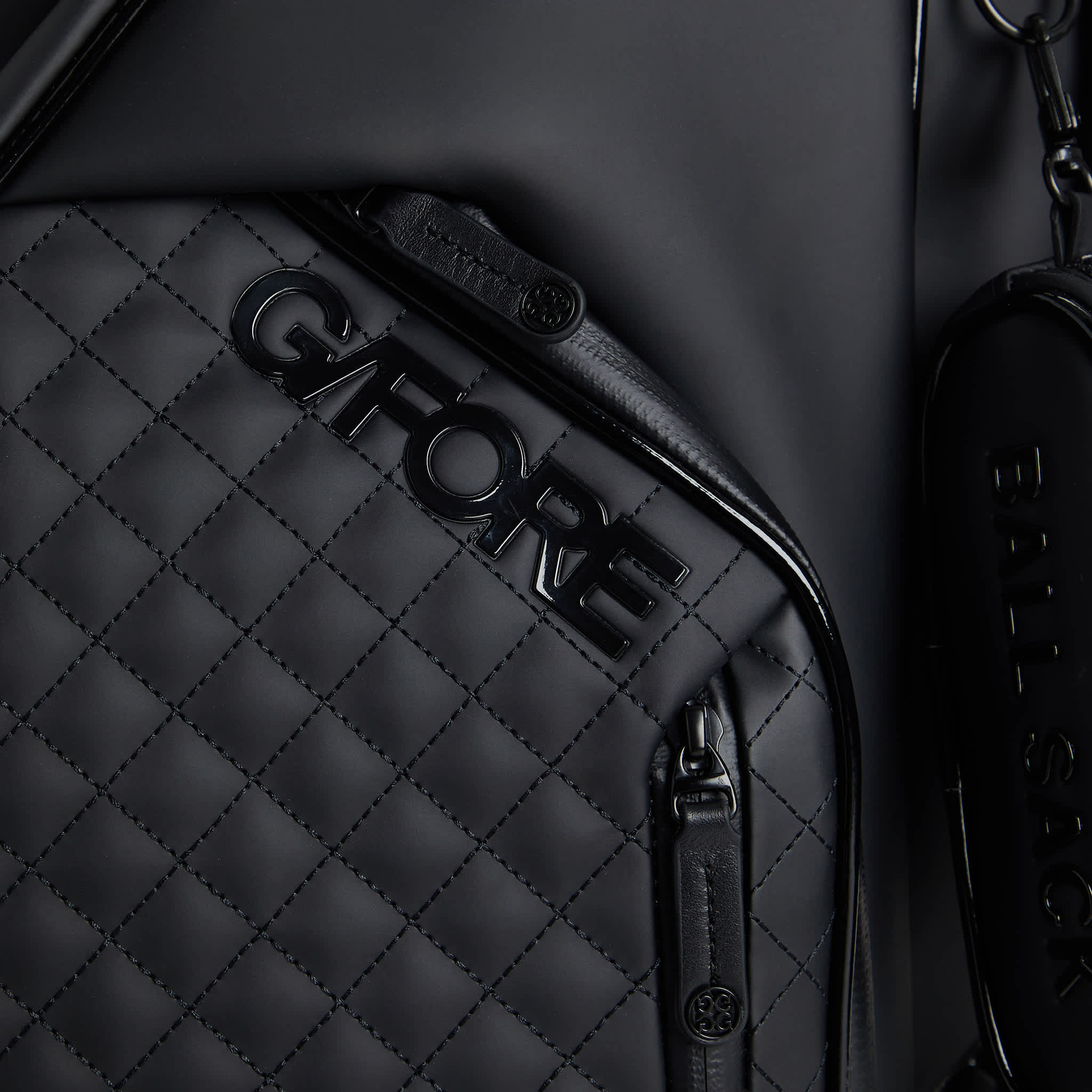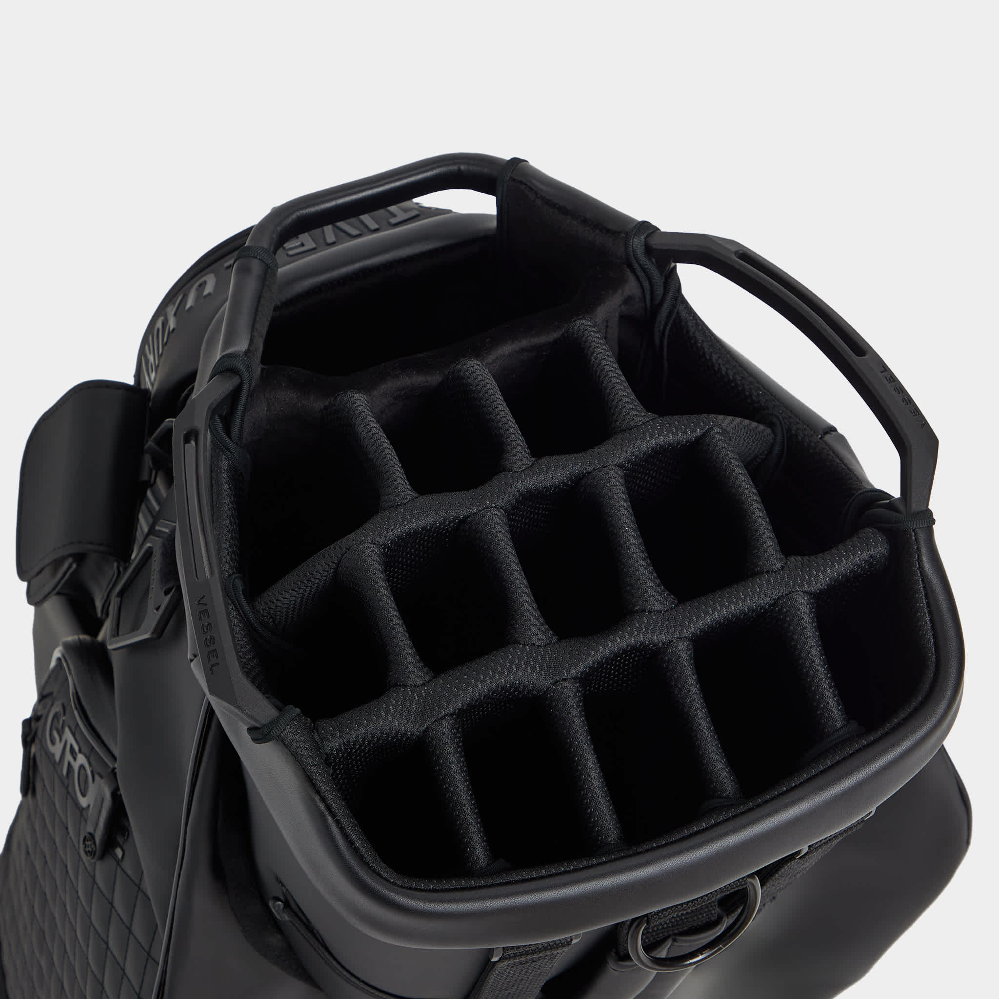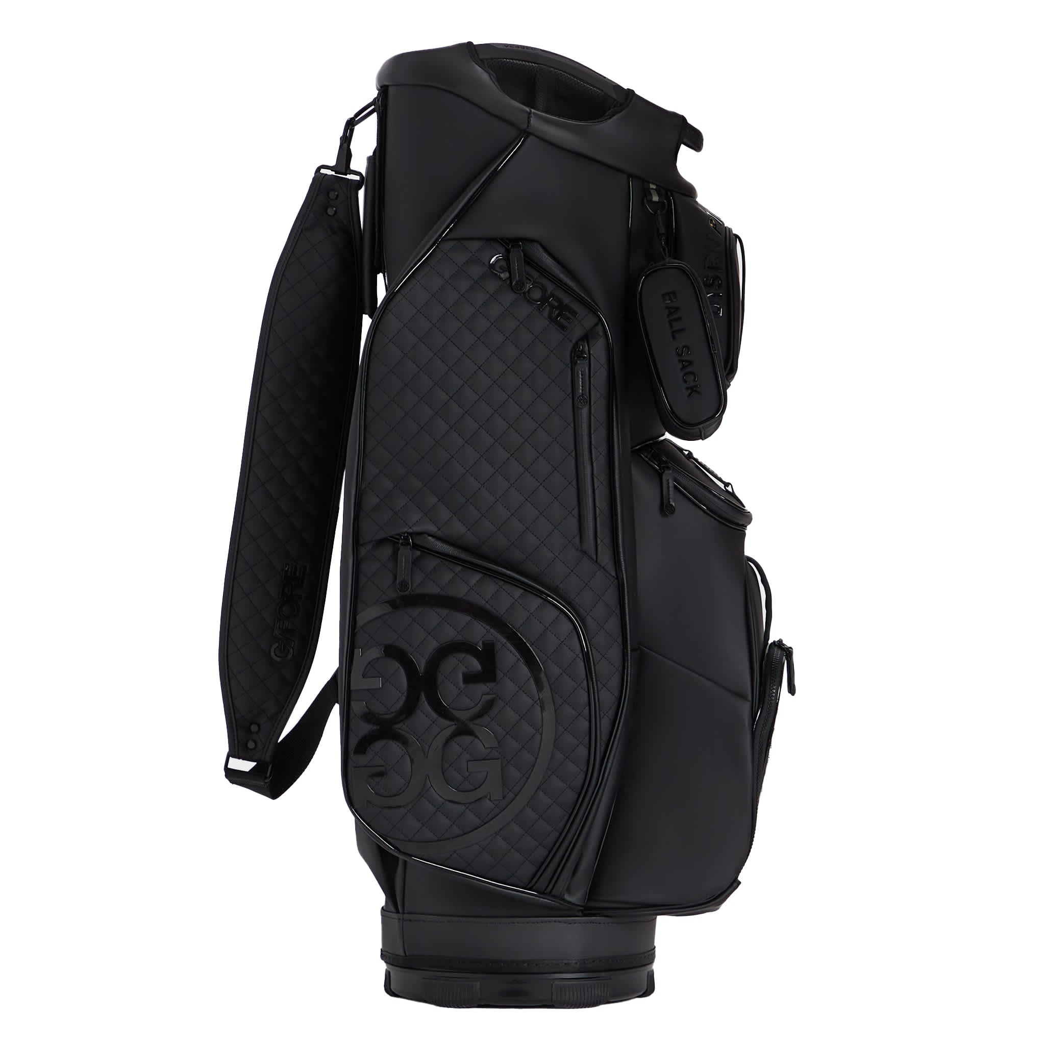 MADE WITH HIGH ABRASION RESISTANT LIGHTWEIGHT TOUR GRADE PU FOR LONGEVITY 17 POCKETS INCLUDING A FULL LENGTH APPAREL POCKET, A MAGNETIC BALL POCKET, & LINED BEVERAGE POUCHES ADJUSTABLE PADDED STRAP FOR THE PERFECT FIT G/FORE & CIRCLE G'S LOGOS THROUGHOUT VELOUR LINED PUTTER WELL & FULL LENGTH DIVIDERS WATERPROOF ZIPPERS & WATER REPELLING GUSSETS MATCHING RAIN HOOD INCLUDED 10.5” X 8” OPENING, 35.5" H X 15.5" W X 10" D