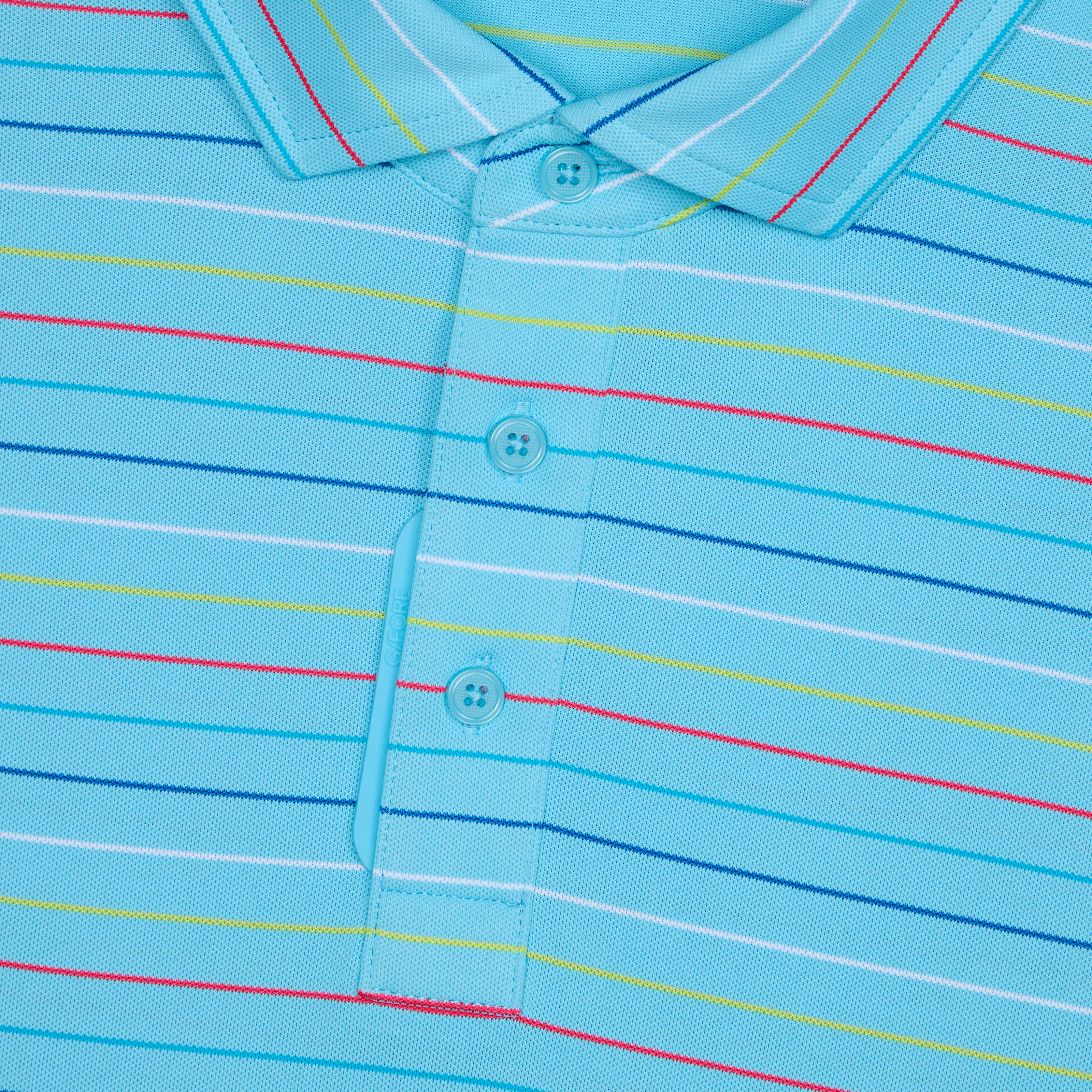 FEATURING MULTI-COLOURED STRIPES, THIS TECH PIQUÉ POLO IS THE ULTIMATE EVERYDAY ESSENTIAL FOR DAYS AT THE CLUBHOUSE, THE COURSE, AND IN BETWEEN. MADE OF BREATHABLE TECH PIQUÉ FABRIC WITH MOISTURE WICKING BENEFITS AND UNBEATABLE 4-WAY STRETCH, IT'S A MUST-HAVE FOR ANY GOLFER'S CLOSET. TUCK INTO A PAIR OF OUR TOUR 5 POCKET PANTS FOR AN EFFORTLESS LOOK ON THE GREENS.