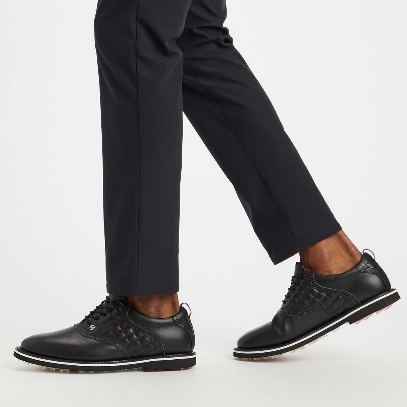 AS STYLISH AS IT IS COMFORTABLE, THE GALLIVANTER GOLF SHOE COMBINES AN ATHLETIC FIT WITH PREMIUM WATERPROOF LEATHER. CUSTOM DESIGNED BY G/FORE?S TEAM OF FOOTWEAR EXPERTS, THE GALLIVANTER BOASTS AN ULTRA LIGHTWEIGHT SOLE PAIRED WITH A BESPOKE CLEAT DESIGN FOR OPTIMAL ON-COURSE TRACTION. THIS SHOE SPORTS A WASHABLE & ANTIMICROBIAL, TRIPLE DENSITY FOAM CUSHION FOOTBED FOR SUPERIOR COMFORT ALONG WITH COMFORT SYSTEM TECHNOLOGY WHICH ALLOWS AIRFLOW TO THE FEET & PROVIDES THE ULTIMATE MASSAGE FOR YOUR SOLES.