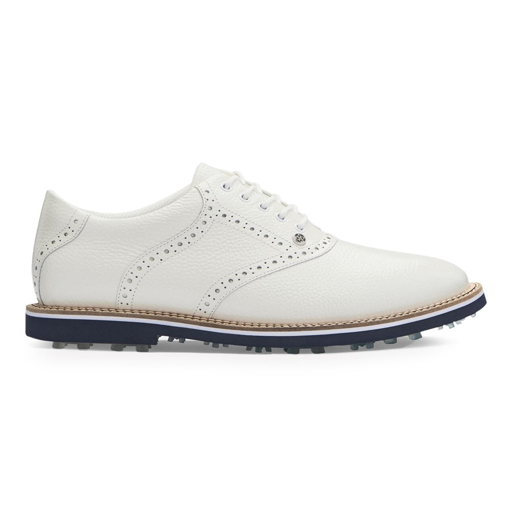 THE SADDLE GALLIVANTER IS G/FORES TAKE ON A CLASSIC GOLF STAPLE. CUSTOM DESIGNED BY OUR TEAM OF FOOTWEAR EXPERTS, THIS STYLE BOASTS AN ULTRA LIGHTWEIGHT SOLE COUPLED WITH A BESPOKE CLEAT DESIGN FOR OPTIMAL ON-COURSE TRACTION. IT SPORTS A WASHABLE AND ANTIMICROBIAL, TRIPLE DENSITY FOAM CUSHION FOOTBED FOR SUPERIOR COMFORT ALONG WITH COMFORT SYSTEM TECHNOLOGY WHICH ALLOWS AIRFLOW TO FEET AND PROVIDES THE ULTIMATE MASSAGE FOR YOUR SOLES. ADD THIS MODEL TO YOUR CLOSET TO COMPLETE A TIMELESS, SOPHISTICATED ON-COURSE LOOK.