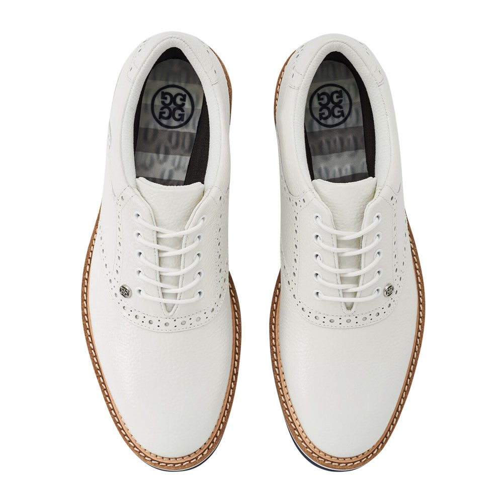 FEATURES MADE WITH WATERPROOF PEBBLE FULL GRAIN LEATHER FEATURING BROGUE DETAILING BESPOKE CLEAT DESIGN FOR OPTIMAL ON-COURSE TRACTION WITH NO NEED TO REPLACE SPIKES WASHABLE & REMOVABLE ANTIMICROBIAL TRIPLE DENSITY FOAM CUSHION FOOTBED PROVIDES THE ULTIMATE MASSAGE FOR YOUR SOLES NO BREAK-IN NEEDED! FULLY PADDED INTERIOR WITH ANTIMICROBIAL MESH LINING FOR ULTIMATE COMFORT & PERFORMANCE FEATURES A COLOURFUL G/FORE CLEAT DESIGN COMES WITH AN EXTRA SET OF LACES