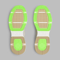 MADE WITH PREMIUM WATERPROOF T.P.U. HYBRID KNURLED & SAWTOOTH TRACTION PATTERN REMOVABLE & WASHABLE MASSAGING INSOLES LOCKED IN STABILITY WITH EXTERNAL HEEL COUNTER RESPONSIVE AUXETIC LATTICE MIDSOLE & SIDEWALL FULLY PADDED MESH INTERIOR LINING ODOR INHIBITING TRIPLE DENSITY FOAM CUSHION FOOTBED