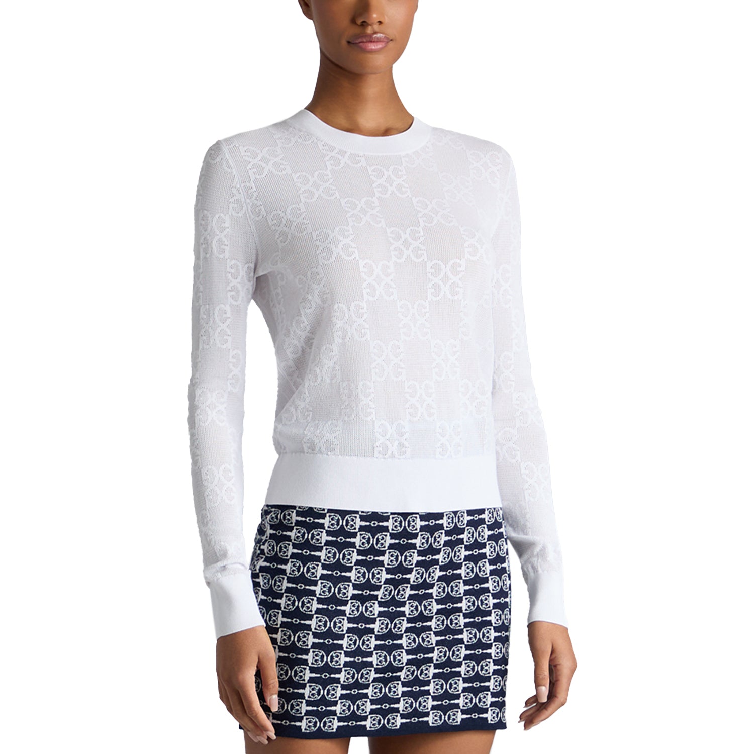 G/Fore Women's Pointelle G Crewneck Golf Sweater - Snow
