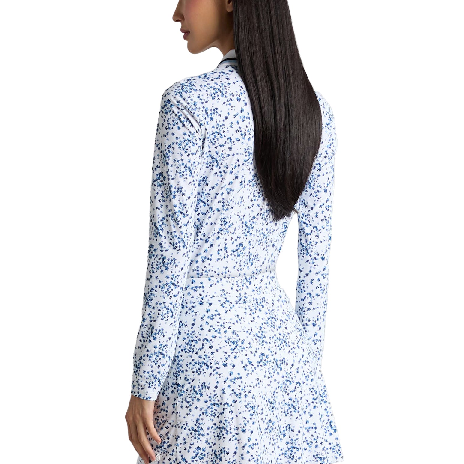 G/Fore Women's Scatter Ditzy Printed Long Sleeve Golf Polo Shirt - Snow/Twilight