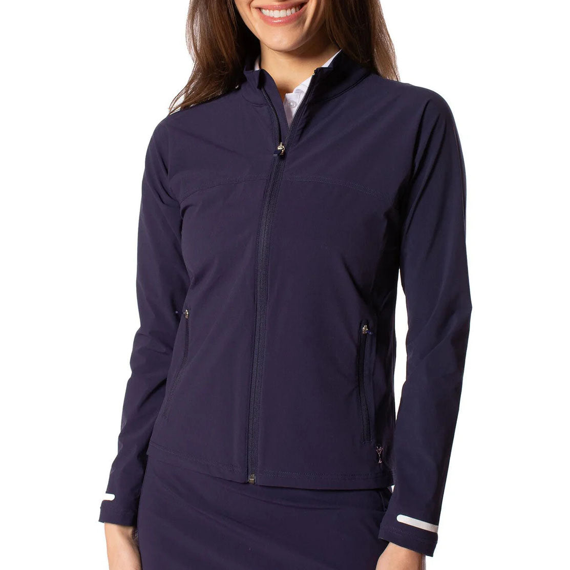 With hidden storm flap and thumb holes, this jacket offers extra coverage when needed, and two zippered pockets provide secure storage for essentials. The matching skort is available to complete the look.