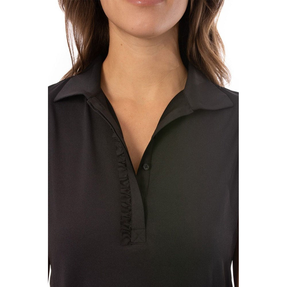 Golftini Women's Short Sleeve Ruffle Golf Polo Shirt - Black