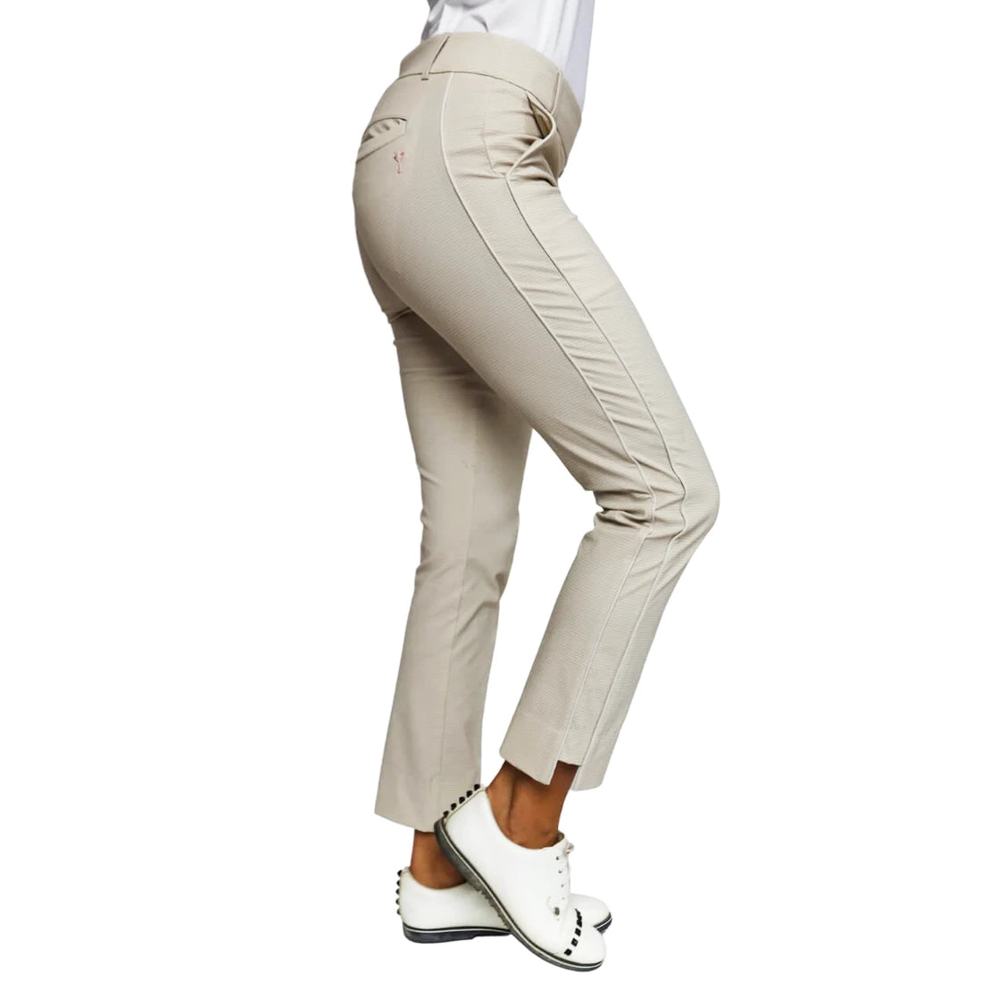 Designed with a 2” elastic waistband for a secure and flattering fit, these pants also include belt loops for added styling options. With functional pockets and a tailored ankle-length fit, they’re as practical as they are stylish, whether you're on the green or out for a casual outing.