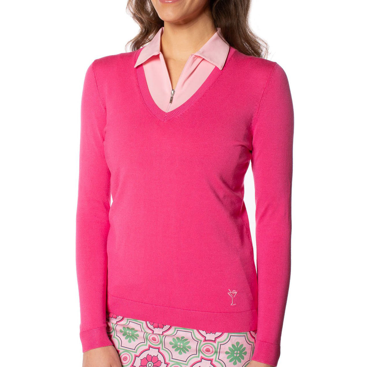 Golftini Women's Stretch V-Neck Golf Sweater - Hot Pink