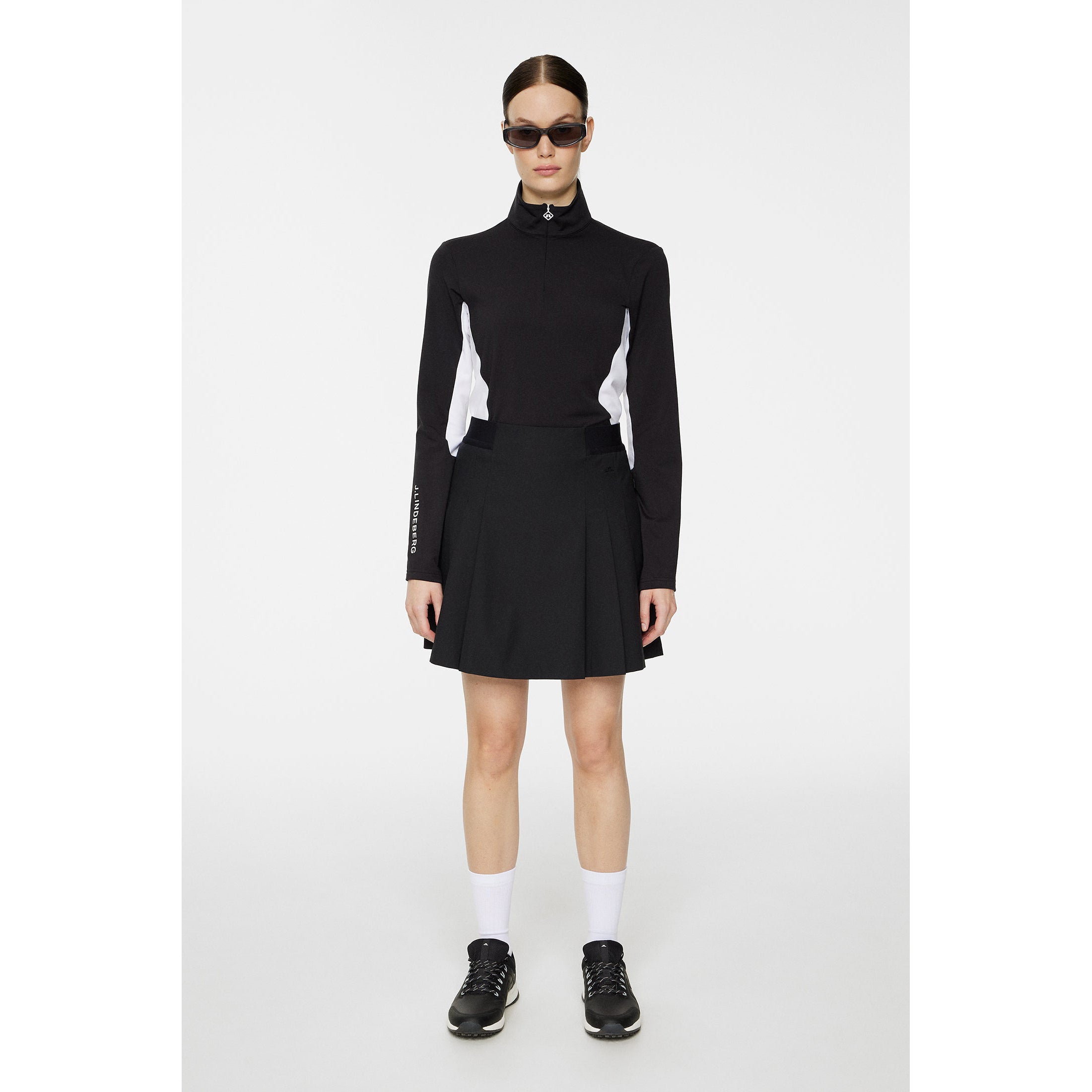 Fast-Drying Fabric: Helps manage heat and moisture to keep you cool and dry throughout the day. Stretch Construction: Delivers flexible comfort that moves with you during every activity. Breathable Design: Promotes airflow to support comfort in warm or active conditions. Water-Repellent Finish: Provides lightweight protection when weather is unpredictable. Lightweight Feel: Offers easy, comfortable wear without added bulk. Elastic Waistband: Ensures a secure, smooth fit that adapts to your shape. Integrated Inner Shorts: Delivers built-in coverage for confident movement. Bridge Logo Detail: Adds a clean and recognizable J.Lindeberg finish. Side Pleats: Creates natural movement and adds a feminine silhouette. Concealed Side Pockets: Offers sleek, functional storage without interrupting the look.