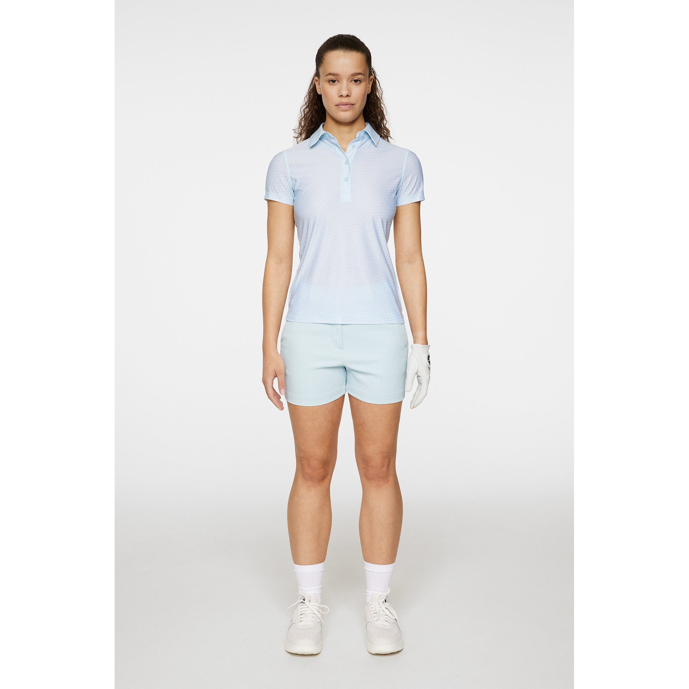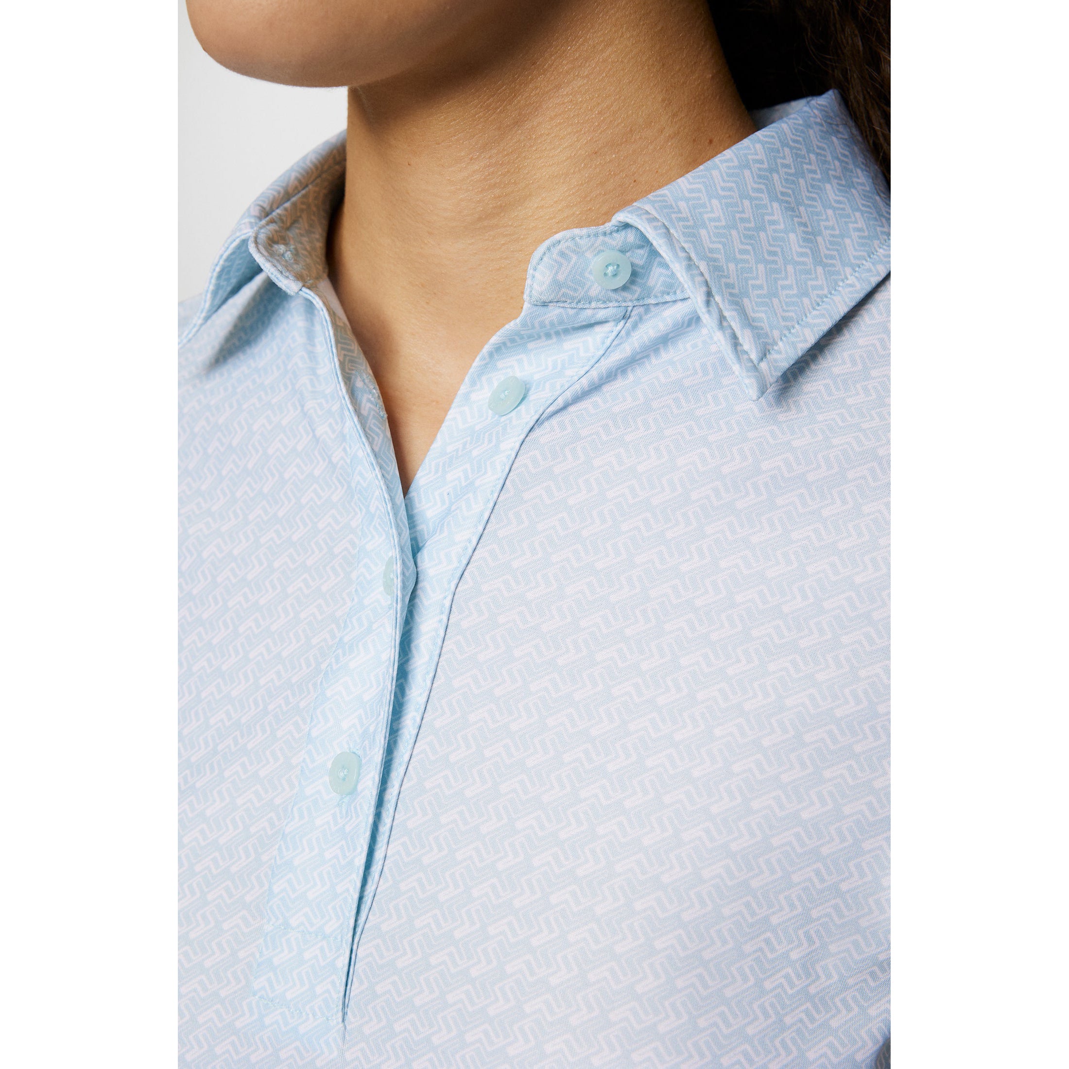 Add a feminine flair to your activewear with the J.Lindeberg Caitlyn Polo, a sleek, sleeveless essential designed to keep you cool, confident, and stylish from tee-off to clubhouse. Crafted from soft, high-performance TX Jersey with a lightweight feel and compression fit, this top features a striking all-over print, curved side slits, and a modern mock neck for a flattering, athletic silhouette.