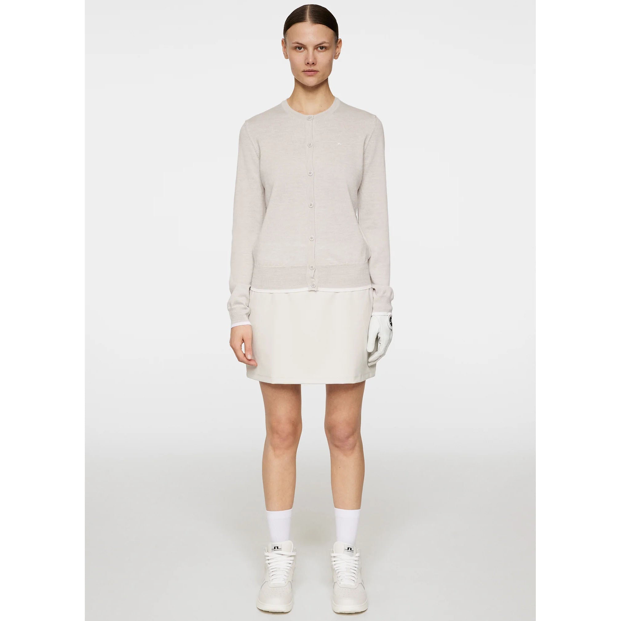 Elevate your on-course style with the J.Lindeberg Women's Joanna Knitted Golf Cardigan. This chic, lightweight cardigan is designed for versatility and performance, featuring a refined knit that offers natural odour control, moisture management, and thermo-regulation. Its elegant details—including tonal Bridge embroidery at the collar and contrast tipping at the bottom hem and cuffs—make it a standout layering piece for any round or casual outing.