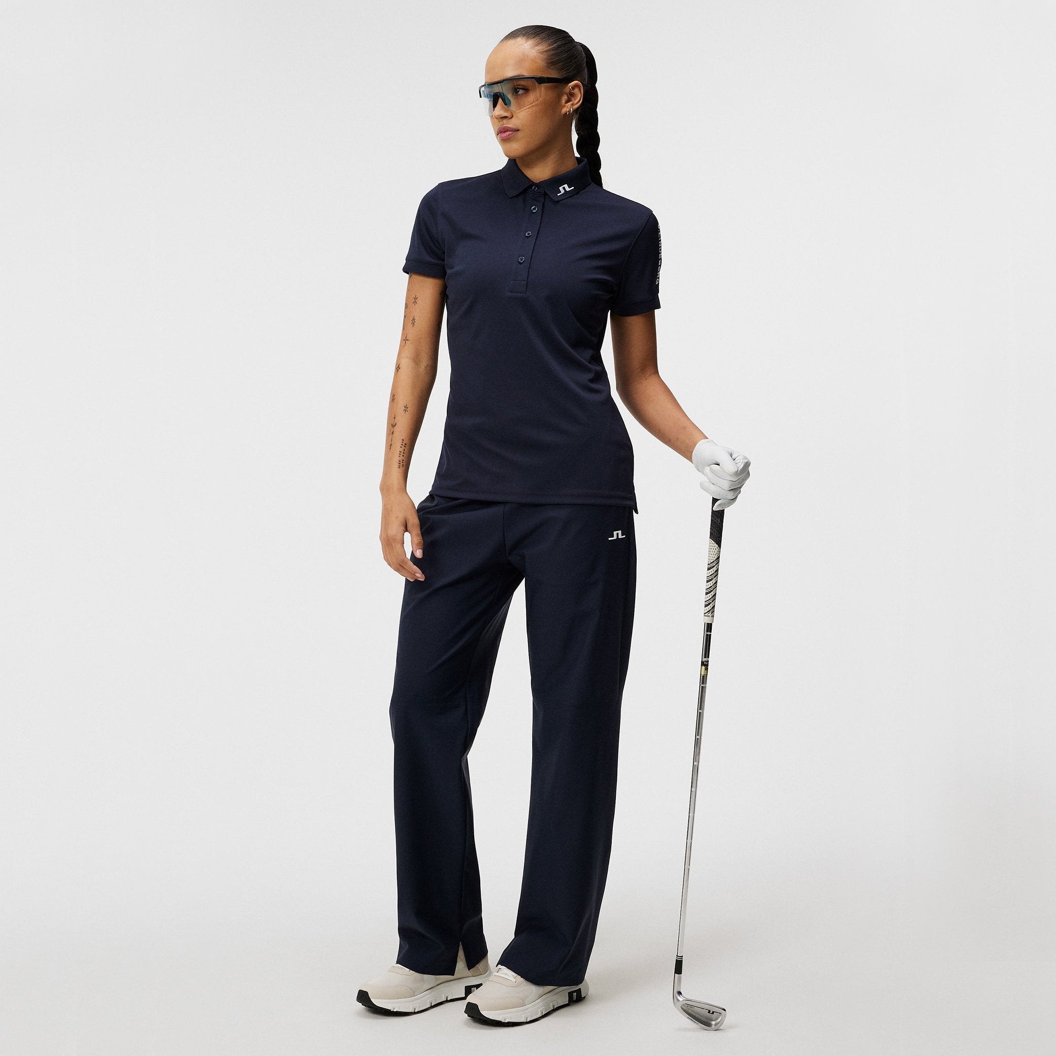 Fast-Drying Fabric: Helps maintain comfort by keeping you cool and fresh throughout the day. Moisture-Wicking Technology: Pulls sweat away from the skin for dryness and breathability in warm conditions. Technical 4-Way Stretch: Supports a full range of motion with a flexible, flattering fit. Bridge Embroidery at Center Back: Offers a signature design detail that adds to the refined finish. J.Lindeberg Embroidery on Sleeve: Delivers subtle branding that complements the clean look. 4-Button Placket: Provides adjustable coverage with a tailored, feminine shape. Rib Collar: Holds its form to maintain a polished and structured appearance.