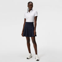 Fast-Drying Fabric: Helps maintain comfort by keeping you cool and fresh throughout the day. Moisture-Wicking Technology: Pulls sweat away from the skin for dryness and breathability in warm conditions. Technical 4-Way Stretch: Supports a full range of motion with a flexible, flattering fit. Bridge Embroidery at Center Back: Offers a signature design detail that adds to the refined finish. J.Lindeberg Embroidery on Sleeve: Delivers subtle branding that complements the clean look. 4-Button Placket: Provides adjustable coverage with a tailored, feminine shape. Rib Collar: Holds its form to maintain a polished and structured appearance.