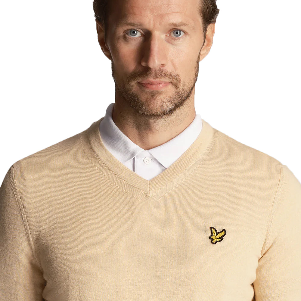 Lyle & Scott Golf Merino Blend V Neck Pullover - Sand Dune