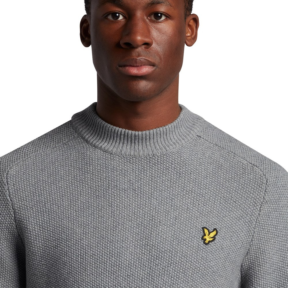 This soft Merino-Cotton blend Lyle & Scott Seed Stitch Mock Neck Pullover is the perfect piece for navigating the changing seasons. Crafted in seed stitch which gives it a uniquely textured finish, the tonal colours and classic mock-neck make this ideal for pairing with jeans or chinos. Finished with fine ribbing at collar, cuff and hem for a tailored fit, as well as their signature Golden Eagle.
