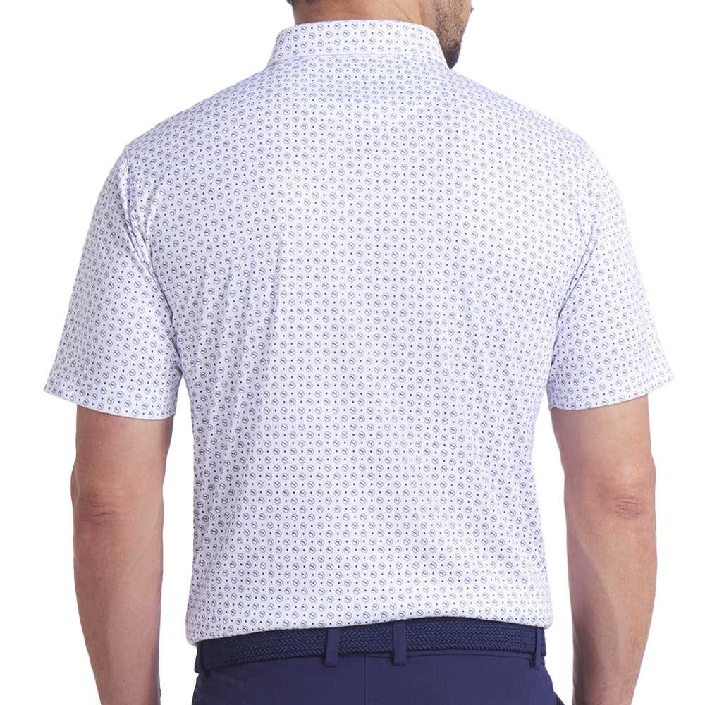 The Puma Pure 2.0 Polo Shirt brings a bold, modern twist to your golf wardrobe with its geometric all-over print and integrated PUMA cat logos. Designed for all-day comfort and clean tour style, this lightweight polo offers outstanding performance and unbeatable value, making it a must-have staple this season.