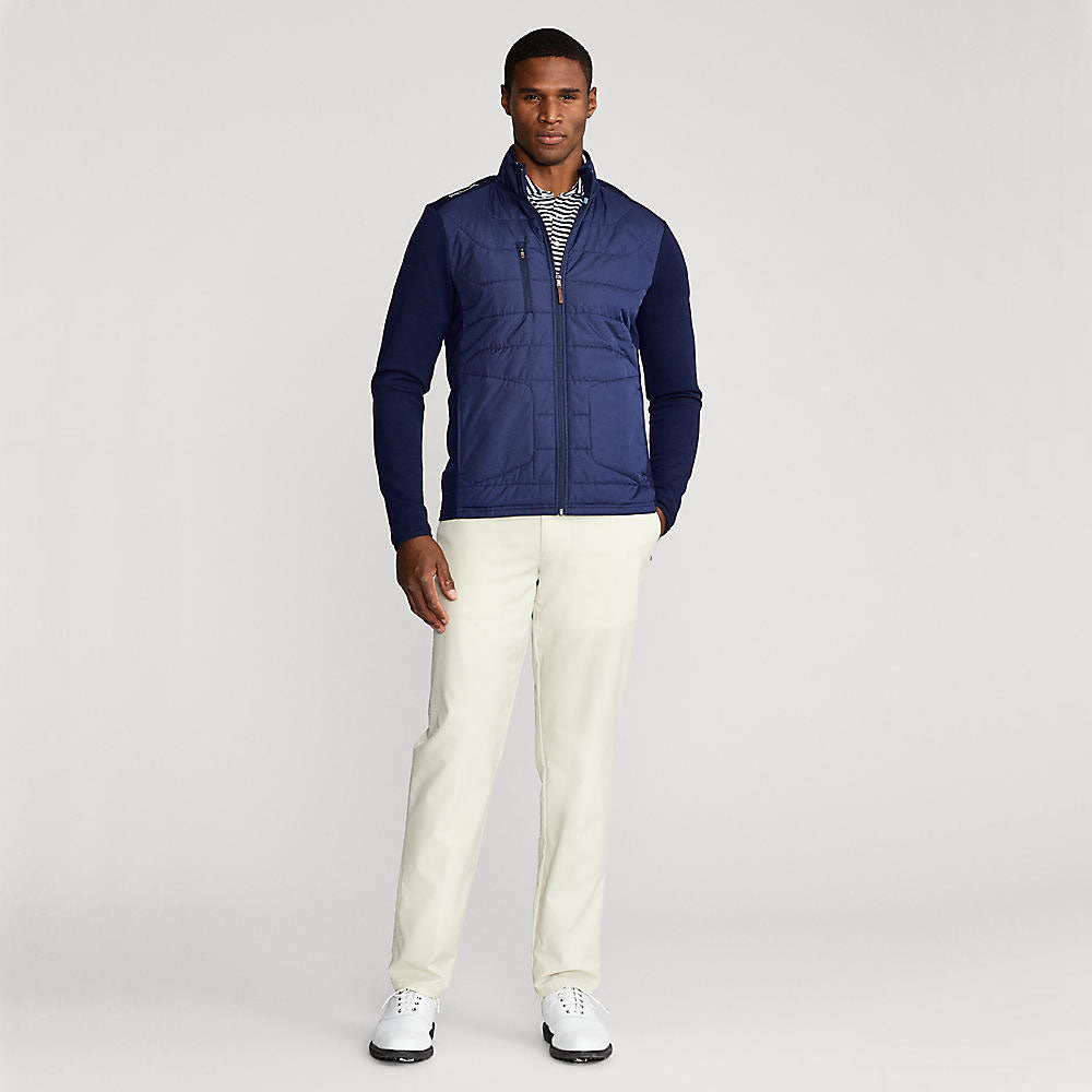 This moisture-wicking jacket fuses stretch terry with an insulating quilted ripstop front panel, ensuring lightweight warmth to keep you comfortable on the links. It is also made with recycled polyester, reinforcing Ralph Lauren’s aim to create the highest-quality products with minimal harm to the environment.