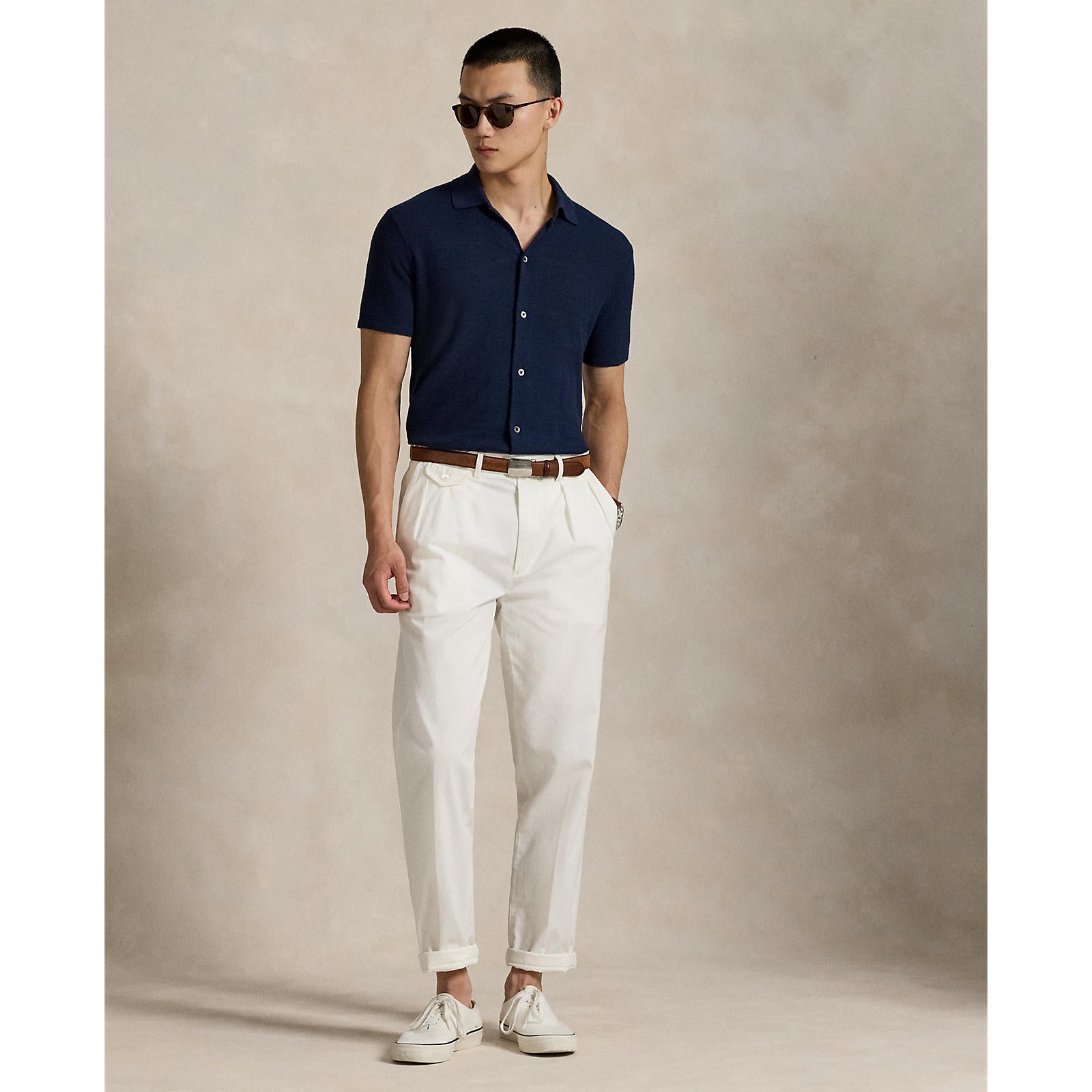 The RLX Ralph Lauren Men’s Linen Button-Up Polo Shirt delivers effortless style with breathable comfort. Crafted from a cotton-linen blend and finished in a subtle seed-stitch texture, this short-sleeve cardigan-style polo is designed to keep you cool while elevating your everyday look. Genuine mother-of-pearl buttons with custom RLX branding add a refined, signature touch.