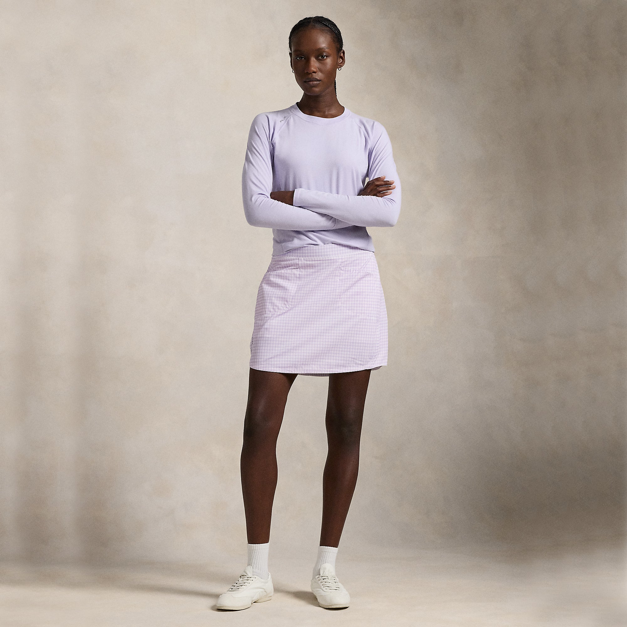 RLX Ralph Lauren Women's 17" Printed Aim Skort - Mini Gingham Purple