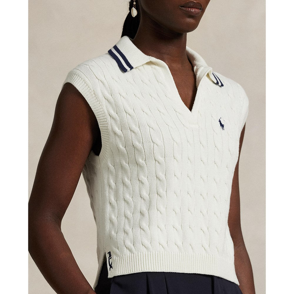 Experience sporty elegance with the RLX Ralph Lauren Cable-Knit Sleeveless Polo, a fresh take on a classic silhouette crafted for performance and style. Featuring signature cable-knit construction and moisture-wicking COOLMAX® fibers, this slightly cropped polo keeps you dry and comfortable, all while showcasing meticulous embroidered details.