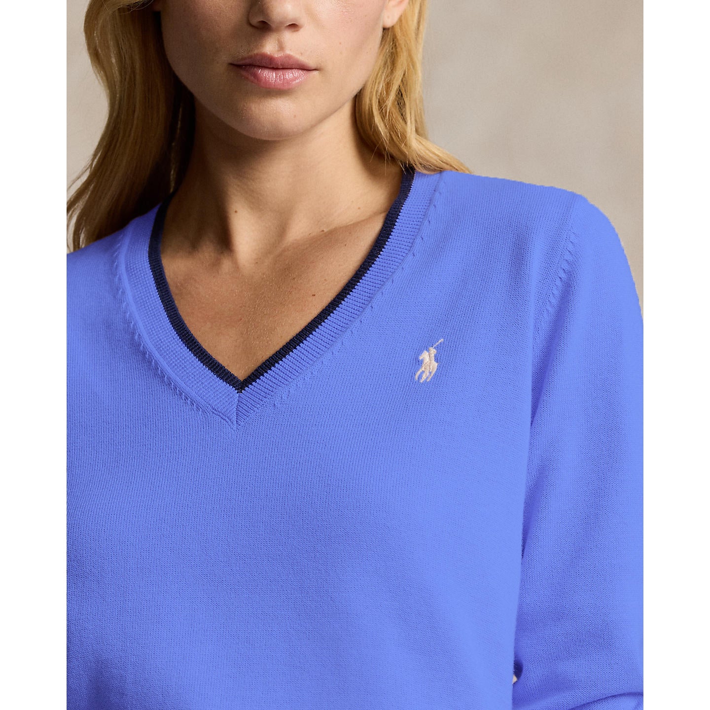 RLX Ralph Lauren Women's Cotton Blend V-Neck Golf Jumper - Greenwich Blue