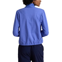 The RLX Ralph Lauren Women's Performance Quilted Full-Zip Jacket in Resort Blue combines both comfort and style for an active lifestyle. Crafted with a stretch cotton-blend shell and a quilted, insulated front panel, this jacket offers lightweight warmth and moisture-wicking properties, keeping you comfortable during outdoor activities. The relaxed, slightly cropped fit hits at the high hip, while the mockneck and sewn cuffs with thumbholes add extra functionality and style. The interior adjustable bungee cord and elasticized back waist ensure a personalized fit.