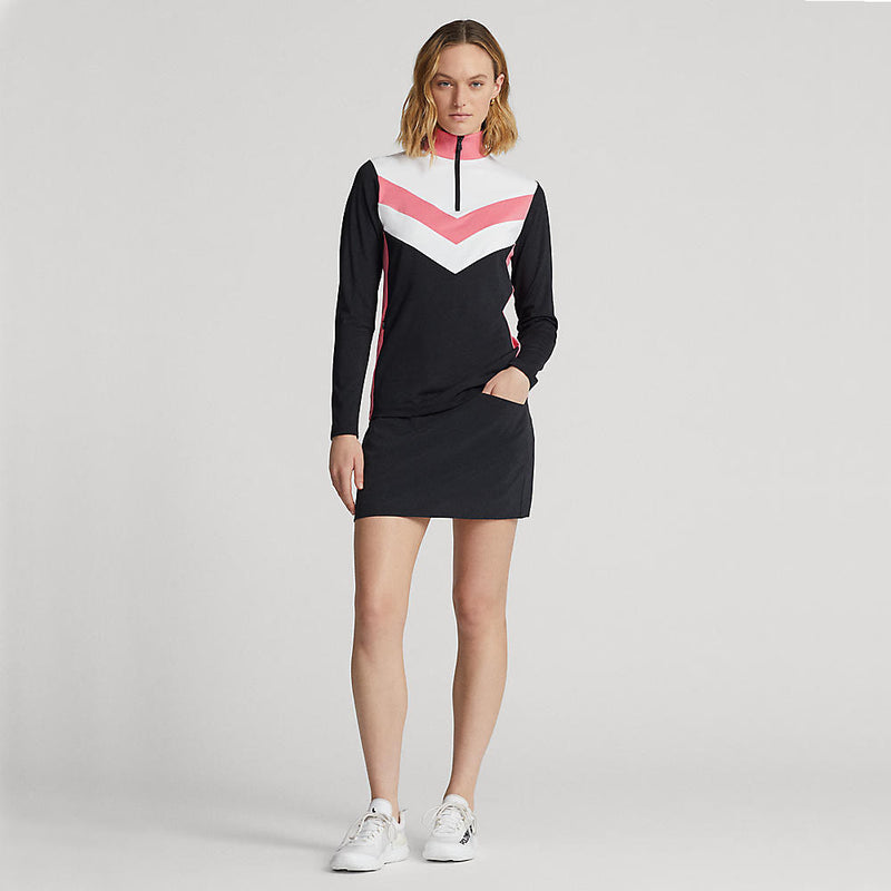 RLX Ralph Lauren Women's Power Stretch 1/4 Zip Pull Over - Polo Black/Desert Rose Multi