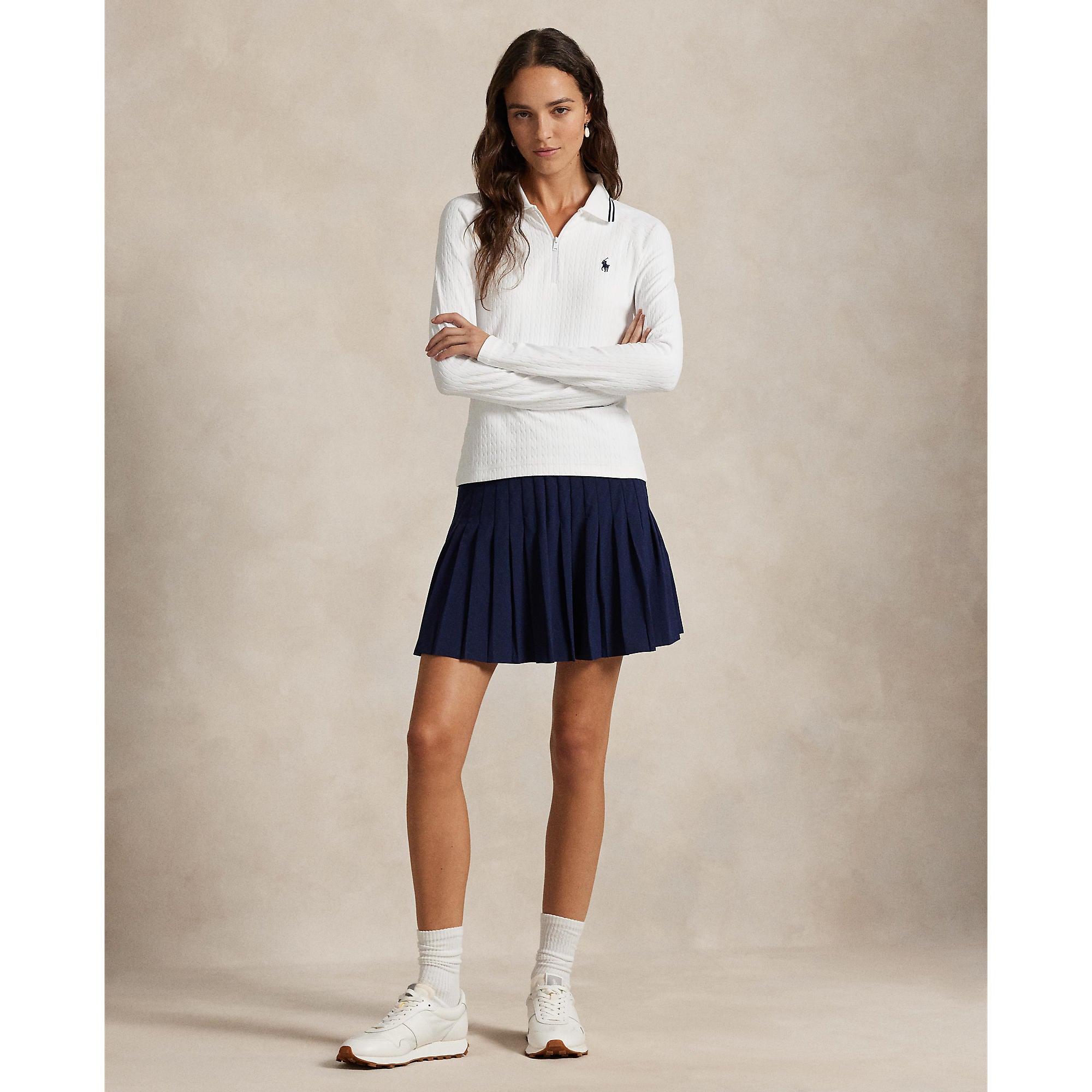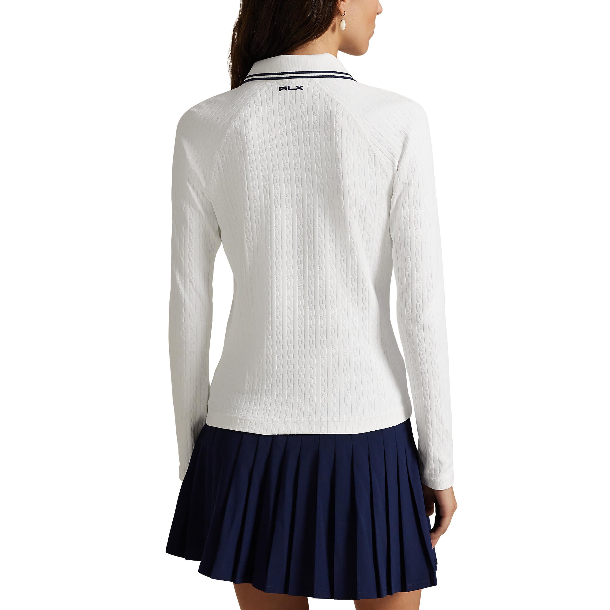 Textured, Sleek, and Performance-Ready The RLX Ralph Lauren Women’s Cable-Knit Quarter-Zip Polo blends classic Polo styling with modern, performance-driven design. Crafted from double-knit fabric with a subtle cable-knit motif, this slim-fit polo offers refined texture, stretch, and a flattering silhouette, perfect for layering on the course or wearing on its own.