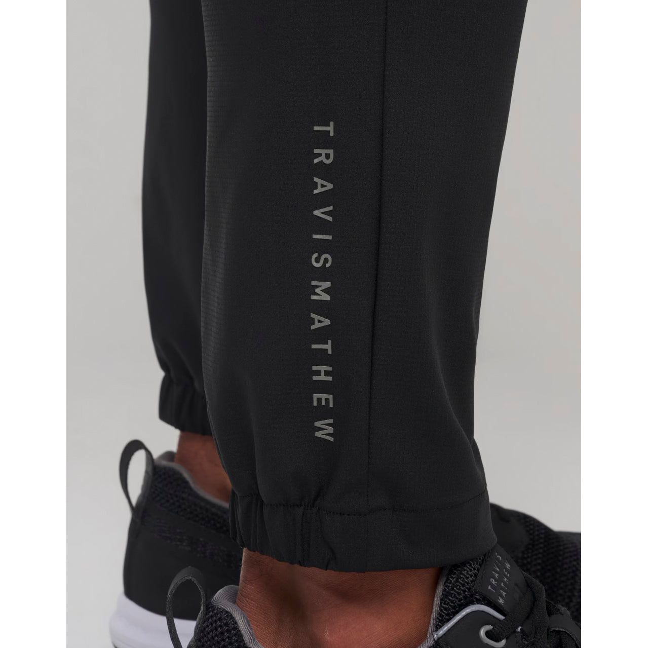 -Modern, tapered jogger fit, 32 1/2” inseam, 42 1/2” outseam -Signature Wanderlust performance fabrication with 4-way stretch -5-pocket design -Half-elastic cuff on back hem -High Density TravisMathew block logo on back of right calf