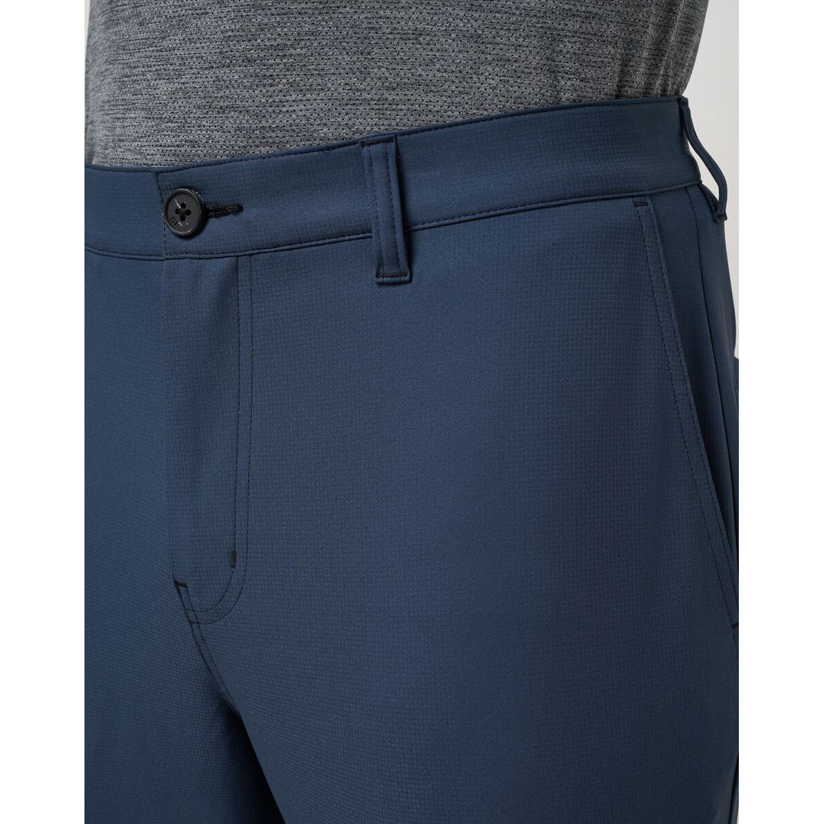 Functional Design: Silicone-grip interior waistband with belt loops; invisible zipper pocket on right side seam; double welt back pockets