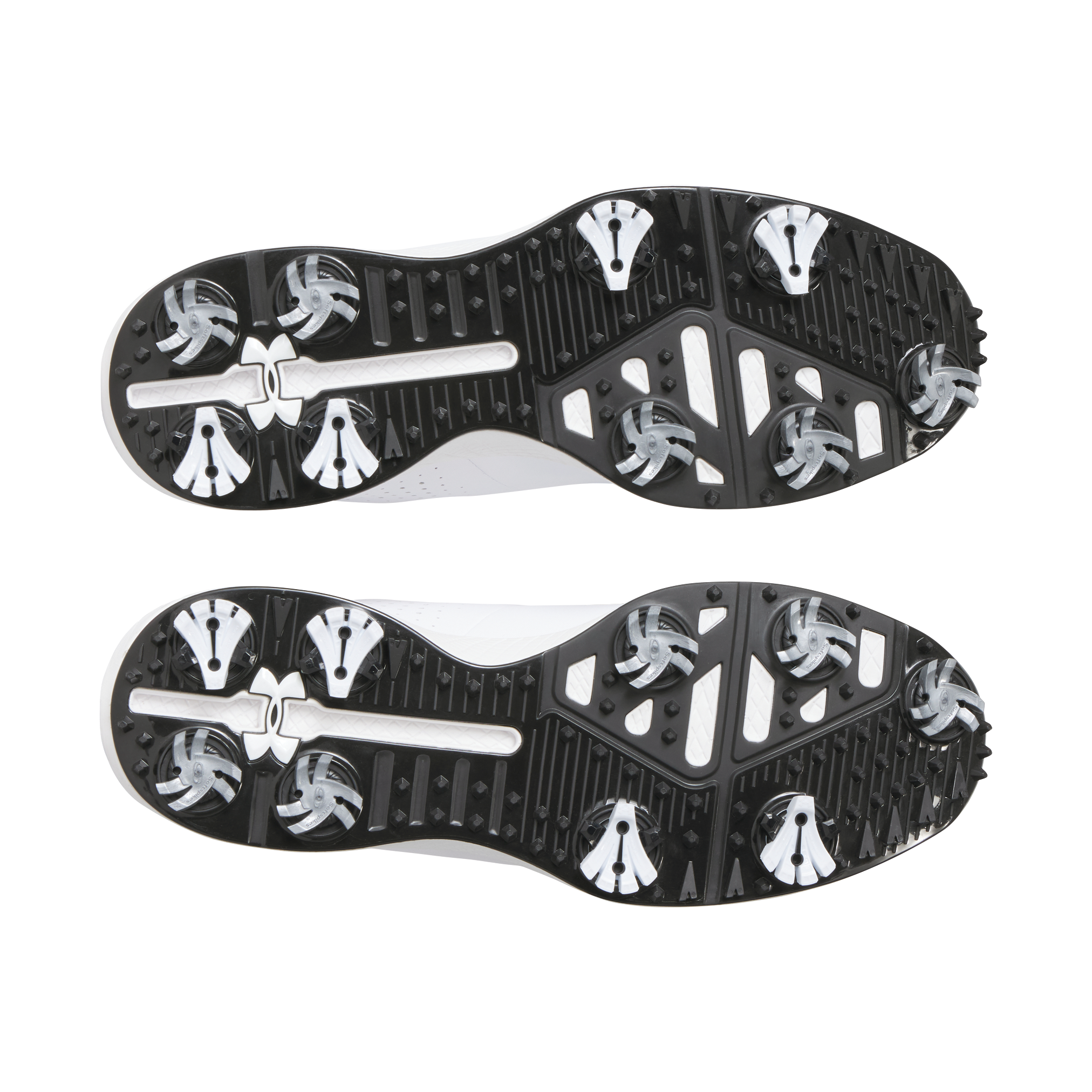 -UA Swing Support System (S3) provides smarter traction, dual-foam cushioning & lockdown lacing -Swing Support Strap combines with reinforcement in the upper to provide biomechanically correct lock-in -Energy-returning UA HOVR™ foam + supportive Charged Cushioning® guides natural motion of the foot in a golf swing -New UA S3 spikes—designed with Softspikes® & a golf biomechanist—for game-changing directional traction -Outsole has strategic flex grooves, secondary traction & TPU up the side for added support at impact -Updated fit with more room at the ball of the foot for improved comfort & stability -Breathable, supportive engineered microfiber upper & full waterproof membrane -Molded sockliner for enhanced fit & comfort