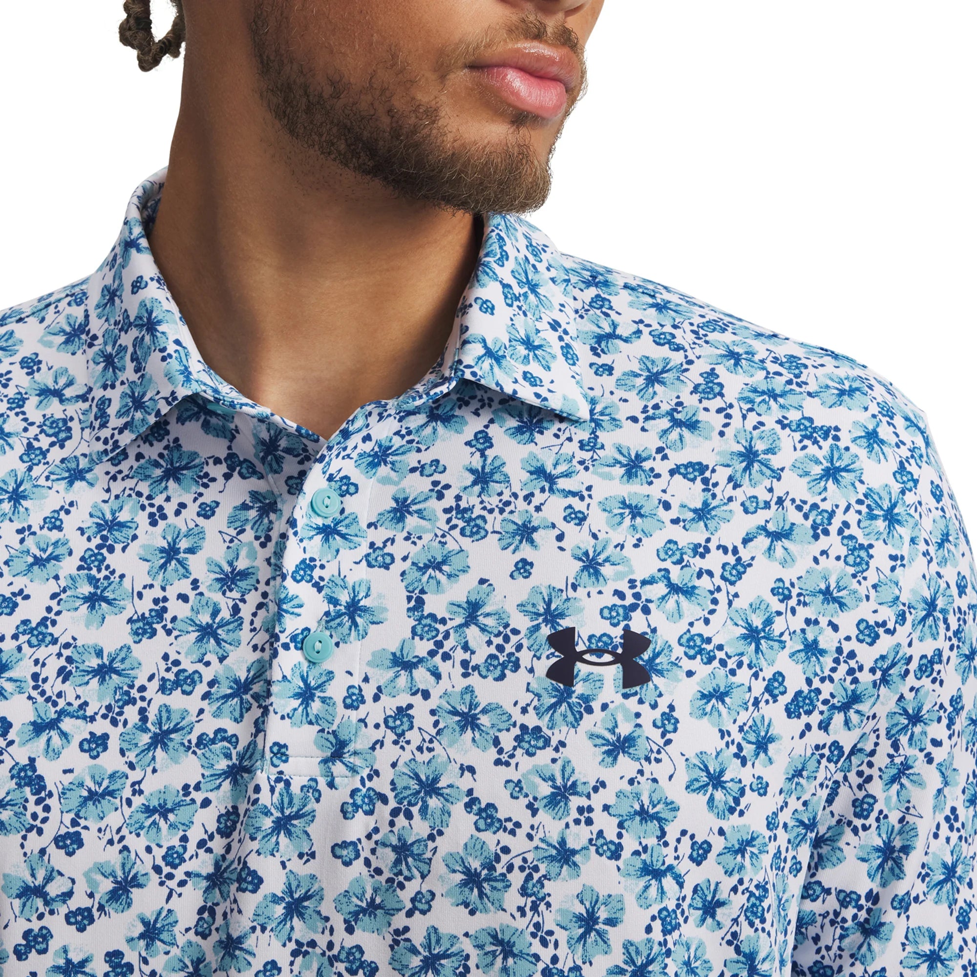 Introducing the Under Armour Playoff 3.0 Printed Golf Polo in White/Blue — a refined evolution of Under Armour's most popular golf polo, engineered to be more breathable, extra stretchy, and better fitting than ever before. Built to help you play distraction-free for all 18 holes, this polo sets the standard for on-course performance and modern style.